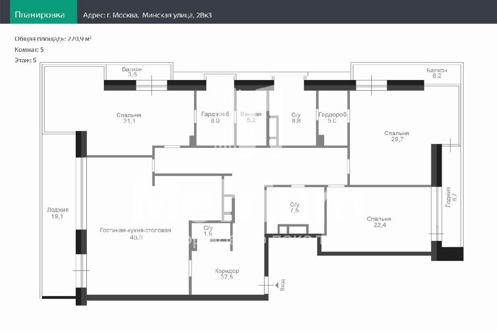 Общая: 220,9 м2